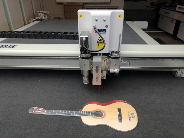 震动工具J341刀片切割KT板(吉他),切割速度快,效果好,无毛刺。可广泛应用于广告行业KT板材料的异形豆奶视频在线观看的需求。
