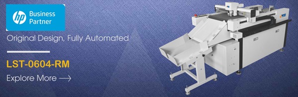 LST-0604-RM特点】1、配备自动送料和辅助收料系统,智能识别送料无纸吸风功能,能实现无人值守连续工作;2、三机头配置,一台机器能同时实现半切,全切和压痕功能;3、滚动台面加上CCD自动定位功能,能实现小批量,多批次自动化作业;4、条形码识别功能,能自动调取切割路径(需要配备扫描枪);5、二维码识别功能,能自动调取切割路径。